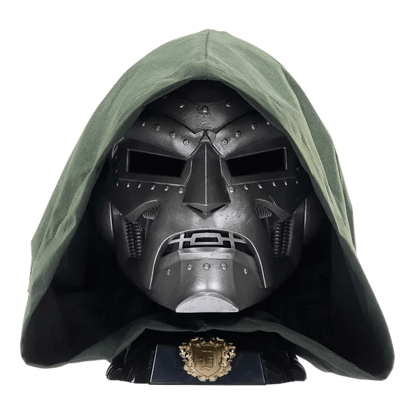 Hasbro Marvel Legends presents a 1:1 scale replica of Doctor Doom’s iconic helmet, meticulously crafted to reflect his classic Marvel Comics appearance. This roleplay helmet features premium sculpting and detailed deco, complemented by a removable green fabric hood inspired by Doom’s signature robe.