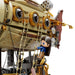 The PanTasy Steampunk Airship melds Victorian-inspired engineering with imaginative sci-fi design. Crafted from metal and intricate machinery, it features a central steam boiler and a tall chimney that emits billowing steam, enhancing its authentic steampunk aura. Interactive elements engage users as turning the knob sets the tail fin swinging like a graceful fish, while rear propellers, side gears, and engine propellers spin in dynamic motion. This double-decker marvel captures the essence of classic zeppelins reimagined through a fantastical lens for a truly immersive experience.